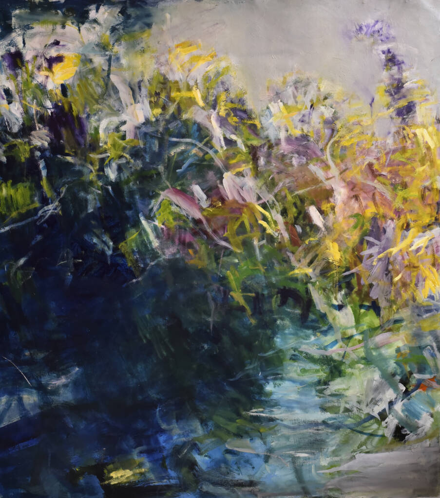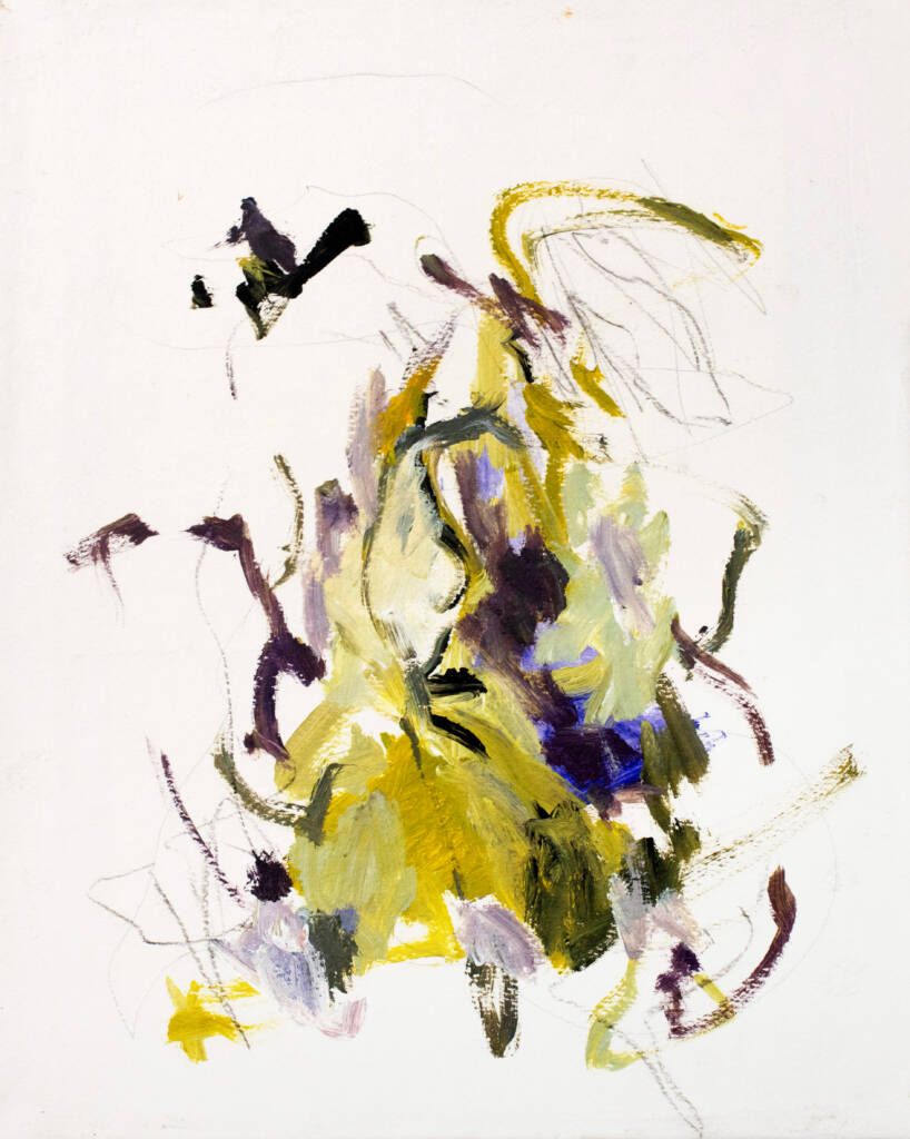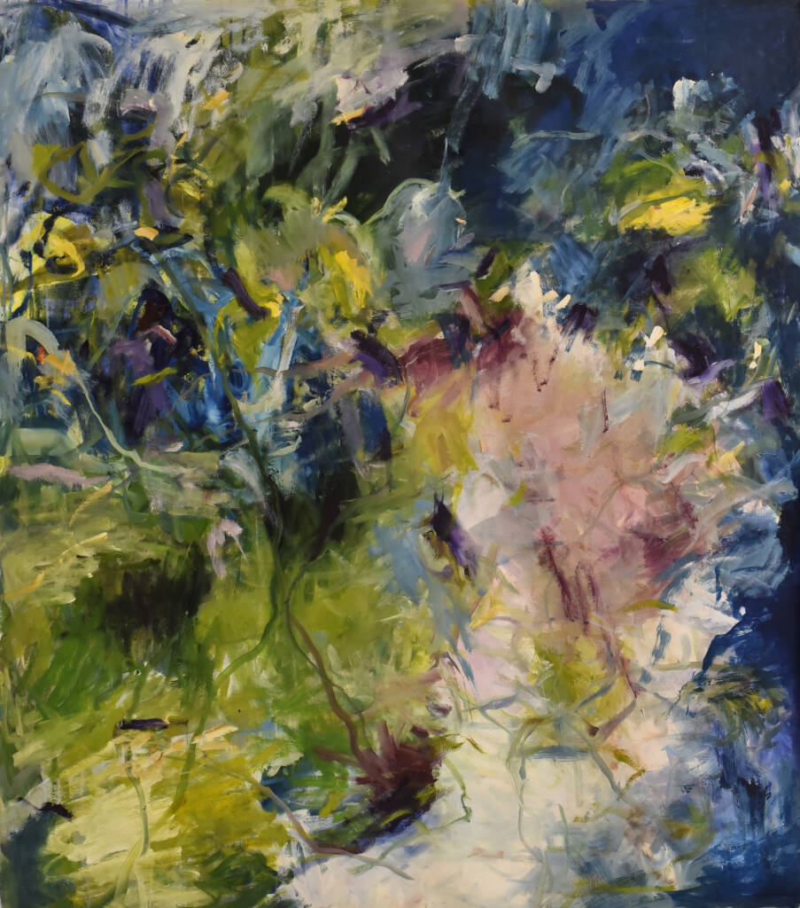 La pintura se vuelve un espacio de respiración. Cada gesto aparece sin apuro, guiado por la escucha y el tiempo propio de la materia. La obra se construye en ese entre, donde lo visible apenas se insinúa y donde algo mas profundo comienza a emerger.
