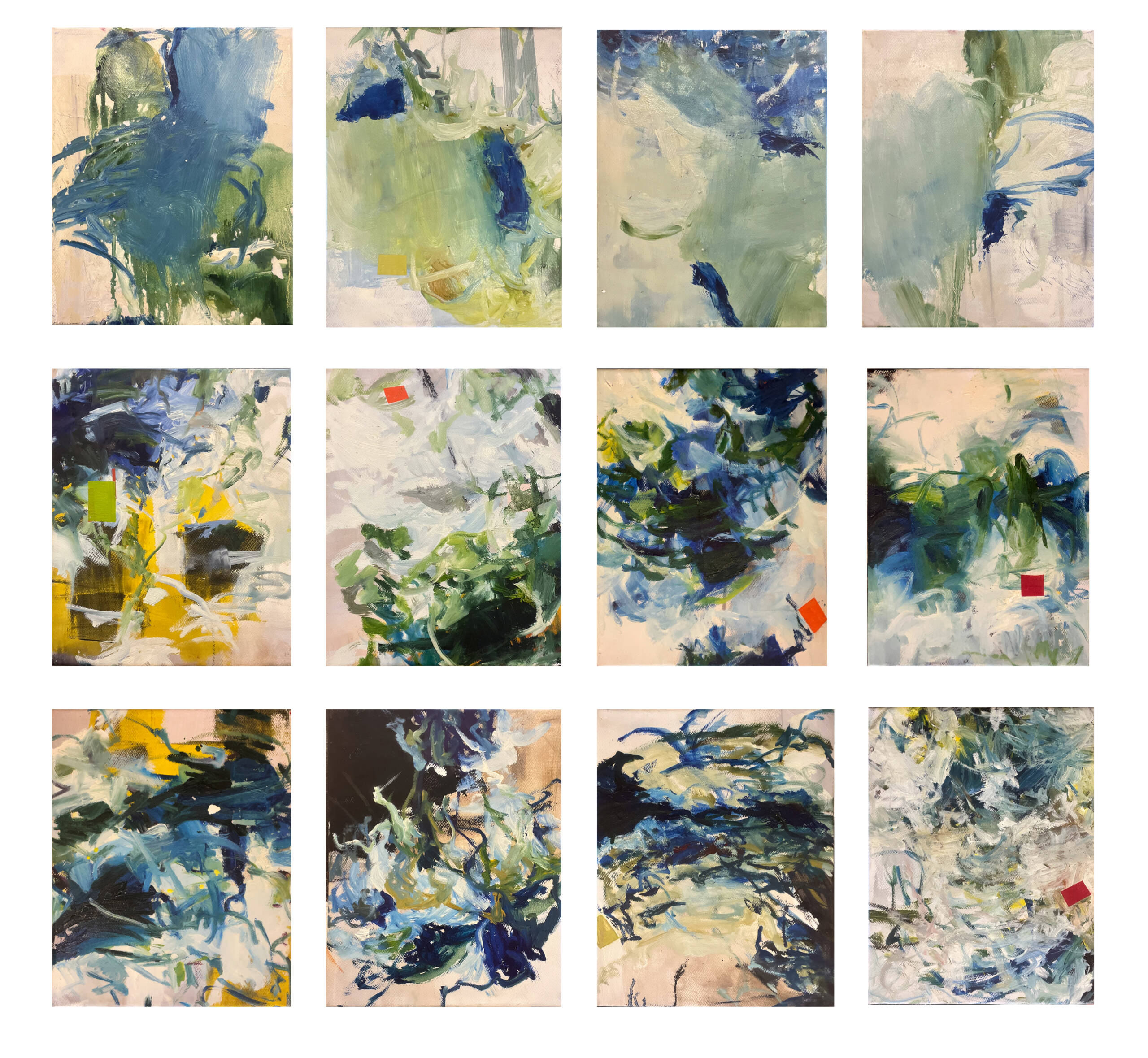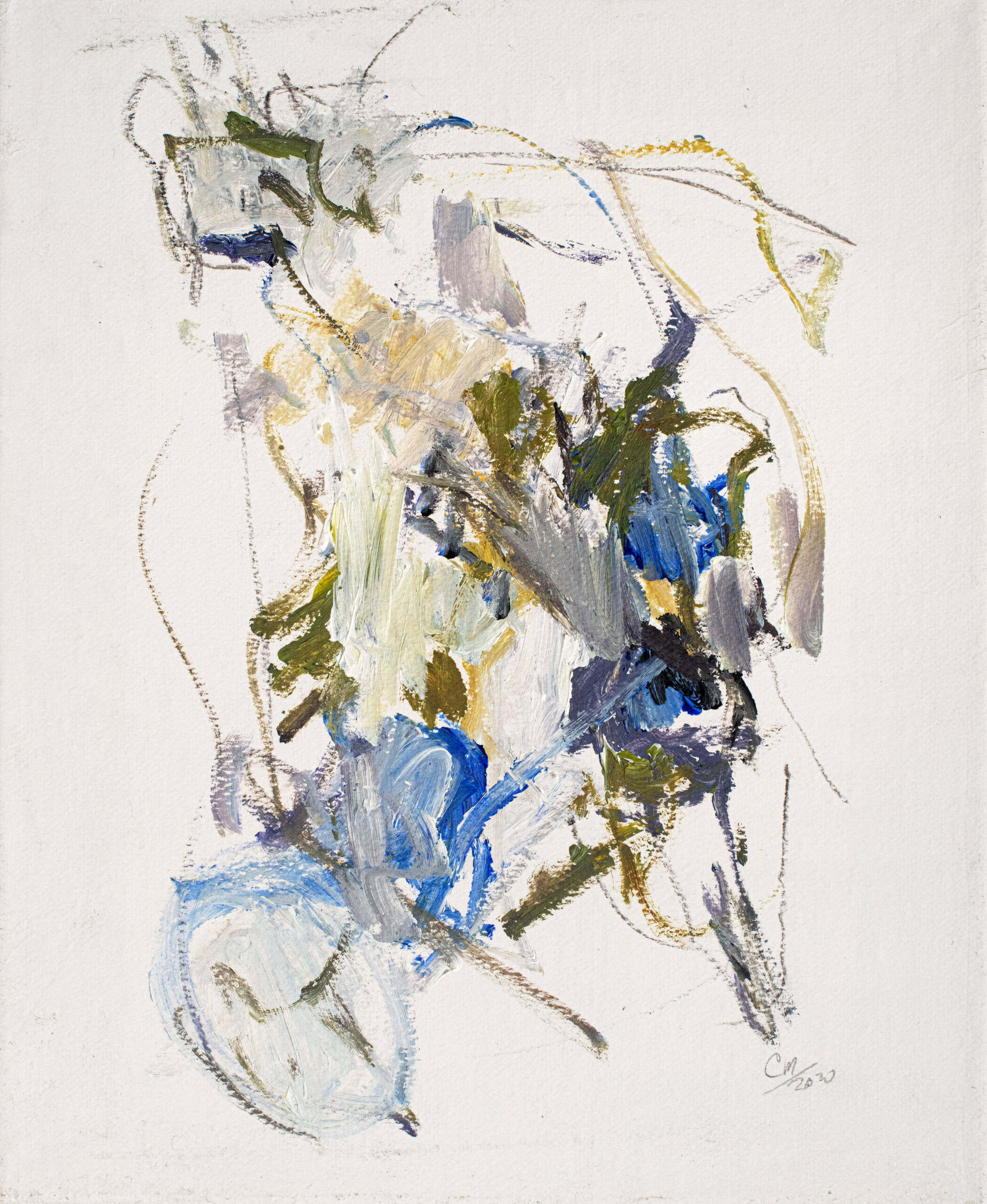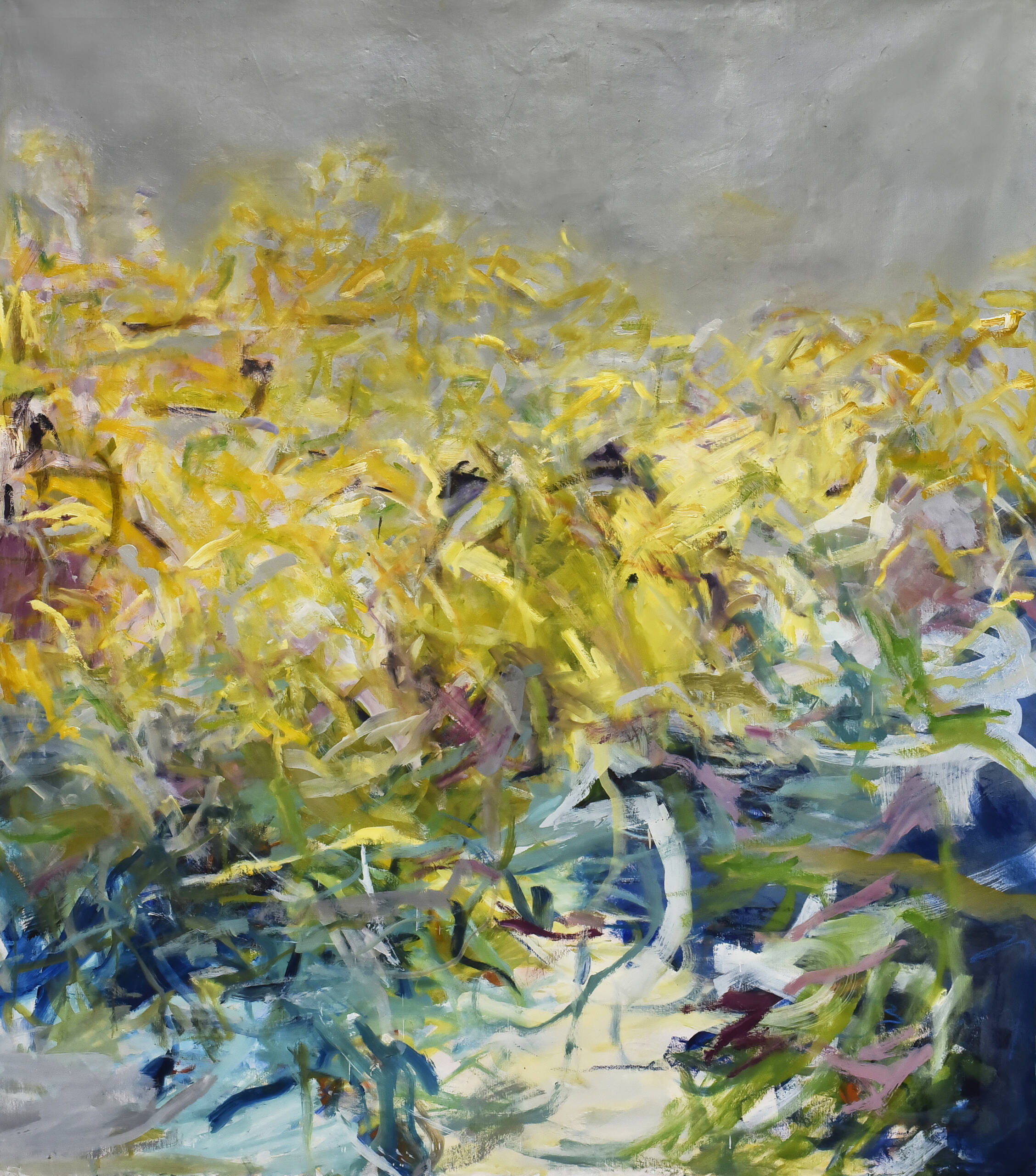 La pintura se vuelve un espacio de respiración. Cada gesto aparece sin apuro, guiado por la escucha y el tiempo propio de la materia. La obra se construye en ese entre, donde lo visible apenas se insinúa y donde algo mas profundo comienza a emerger.